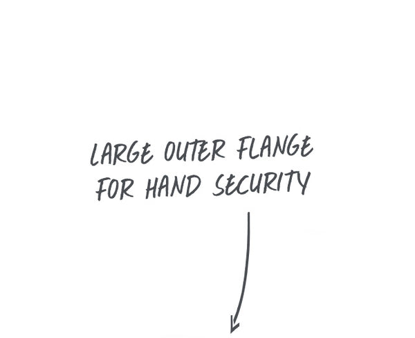 The raised palm provides added comfort, improved ergonomics and a bit of cushion on this otherwise slim grip. It works with the end-flange and finger ridges to give you a powerful, locked-in feel.
