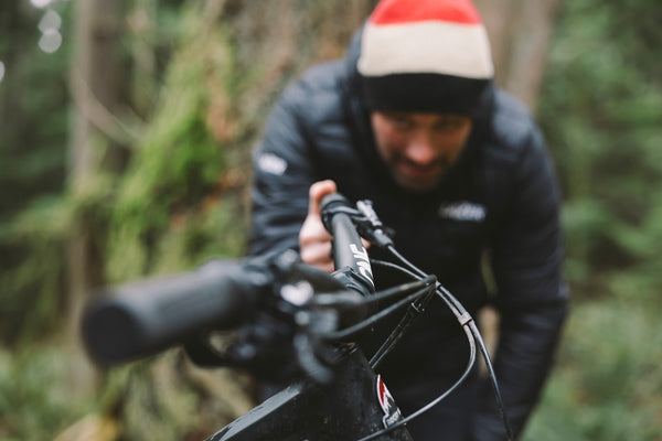 Some riders prefer to have the rise of the bars parallel to their forks. To set the bars up like this, just align the thicker line with the fork steerer (this will mean rolling the bars towards the back of the bike from the directly up position).