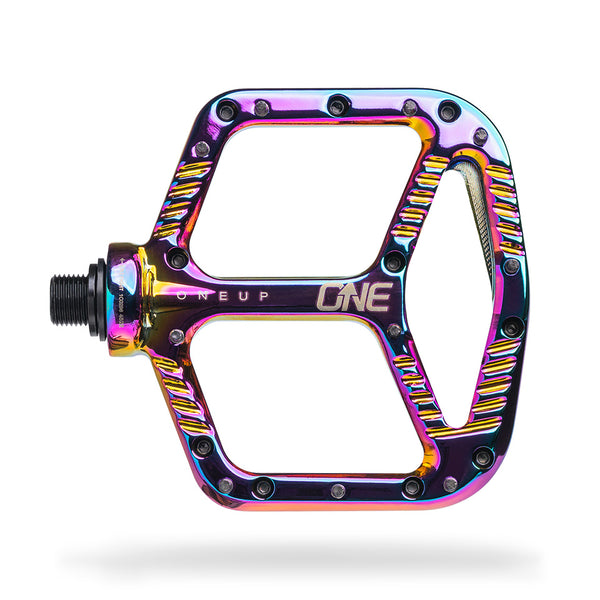 The Oneup Components Aluminum Pedal is a lightweight and durable platform pedal designed for mountain biking. It features a slim profile and a concave platform that provides superior grip and control.