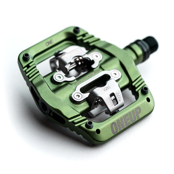 • Custom, Stainless Steel, SPDCompatible Binding offers a locked-in feel with no unwanted play, and works with OneUp's own cleats and Shimano SPD cleats.